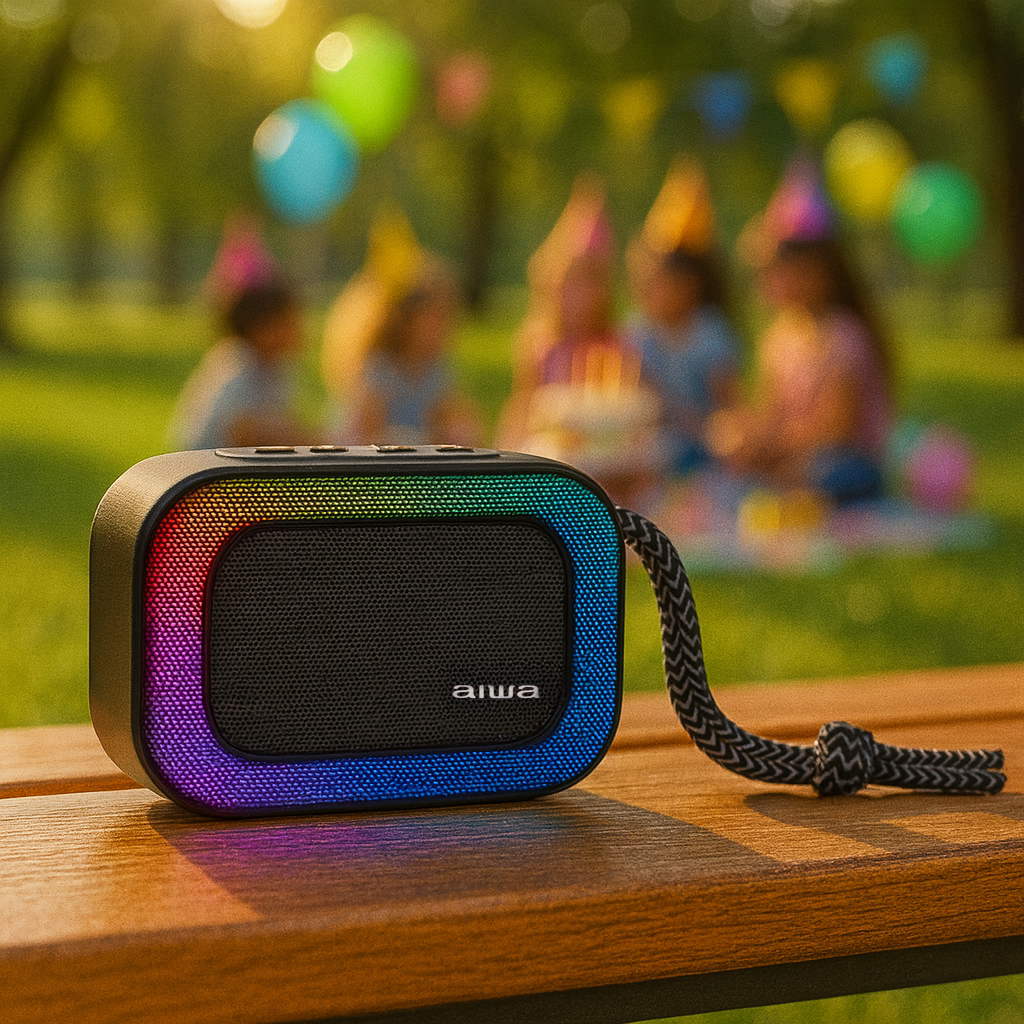El Aiwa BST-130 es la opción ideal para quienes buscan un altavoz portátil, con sonido claro, efectos visuales y funciones modernas, perfecto para disfrutar de música en cualquier momento y lugar.