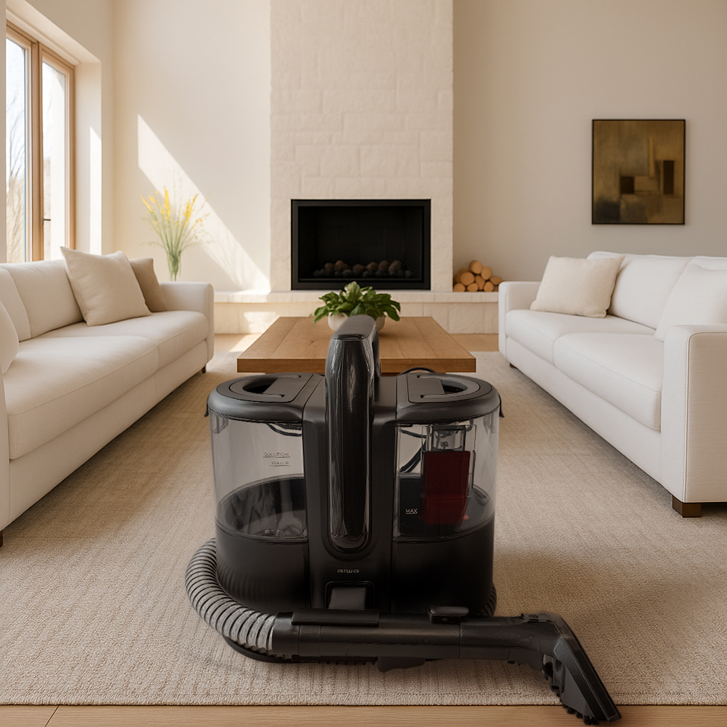 La succión de alta potencia (600 W) se nota tanto en manchas recientes como en suciedad incrustada. En tapicerías y textiles, el flujo de agua limpia ayuda a aflojar la mancha mientras la succión extrae el líquido junto a la suciedad. Gracias al cable de 4 m, puedes moverte con libertad por el salón o llegar al coche en el garaje sin cambiar de enchufe.