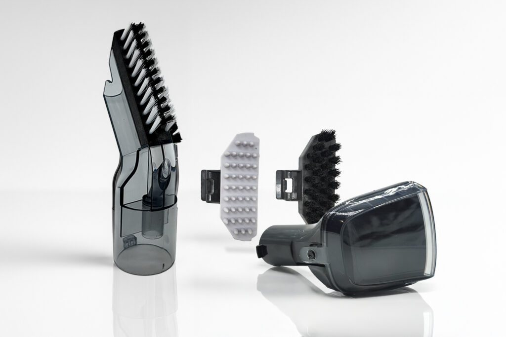 - Accesorios versátiles (3 piezas): cepillo de goma, boquilla para hendiduras y boquilla 2-en-1 para adaptarse a tejidos, rincones y superficies delicadas.