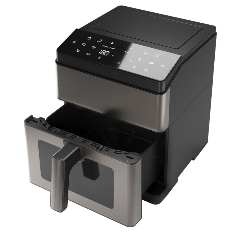 La Aiwa Futago AFR-9000 redefine la eficiencia en la cocina con su doble cesta independiente y potente motor de 2.400 W. Diseñada para familias numerosas o entornos profesionales, permite cocinar dos platos distintos al mismo tiempo sin mezcla de sabores, manteniendo el control y la precisión en cada receta.